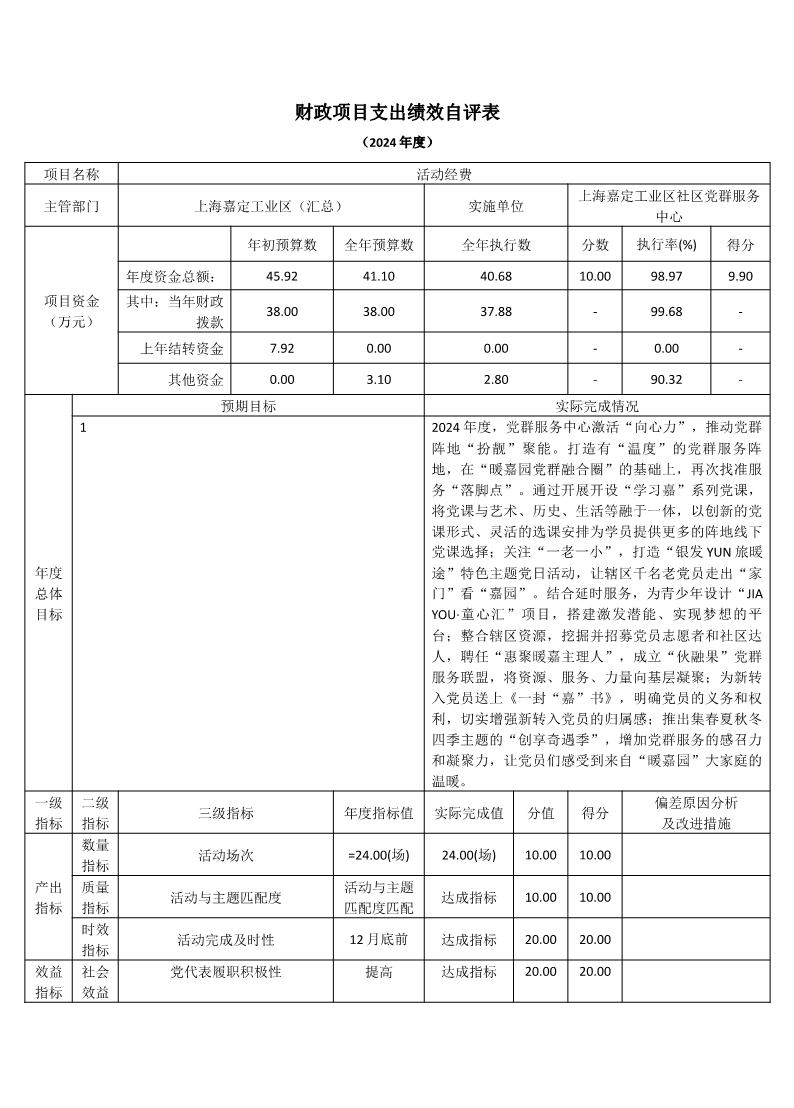 索引号: 00001434-9/2025-00000054 发布机构: 嘉定工业区 发文日期: 2025年08月12日 主题分类: 绩效评价 关键词: 上海嘉定工业区社区党群服务中心2024年度项目绩效自评表 来源:嘉定工业区 发布时间:2025-08-12 浏览次数: 次 【字体:小 大】 分享到: