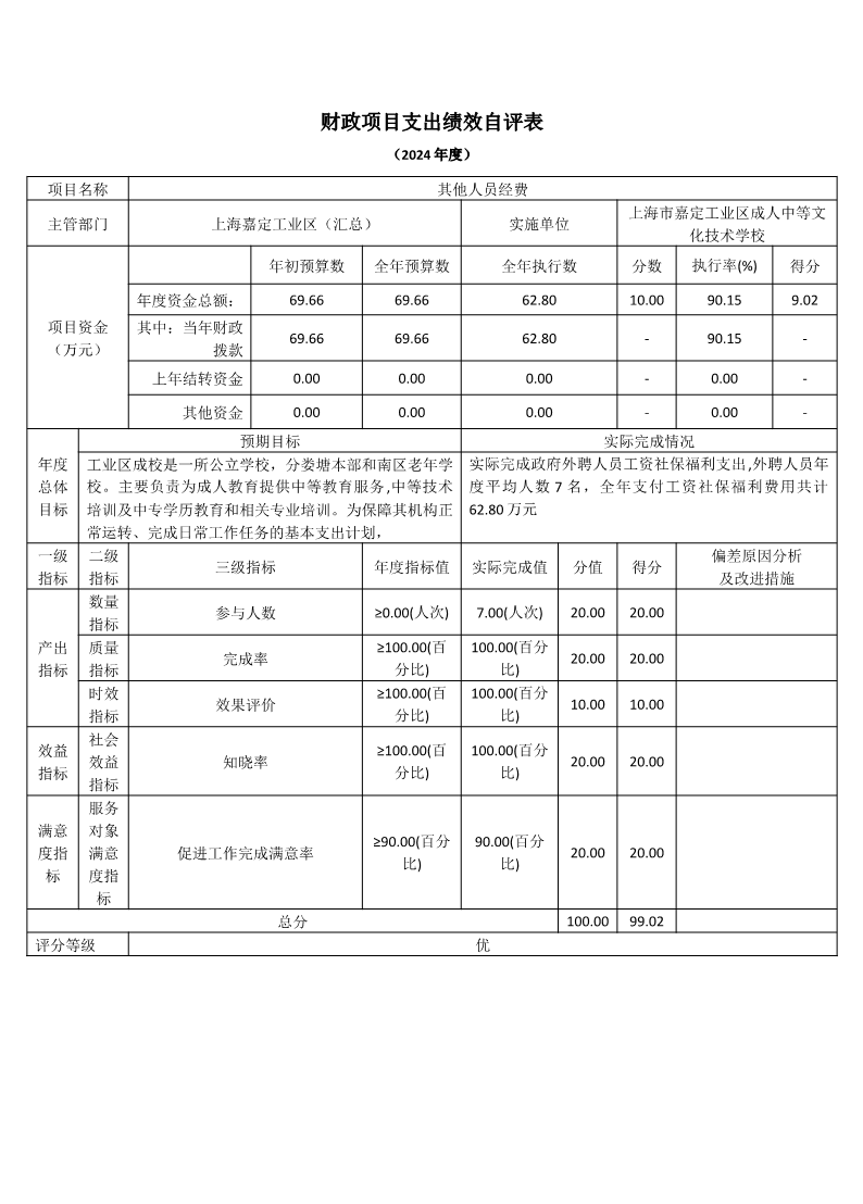 索引号: 00001434-9/2025-00000057 发布机构: 嘉定工业区 发文日期: 2025年08月12日 主题分类: 绩效评价 关键词: 上海市嘉定工业区成人中等文化技术学校2024年度项目绩效自评表 来源:嘉定工业区 发布时间:2025-08-12 浏览次数: 次 【字体:小 大】 分享到: