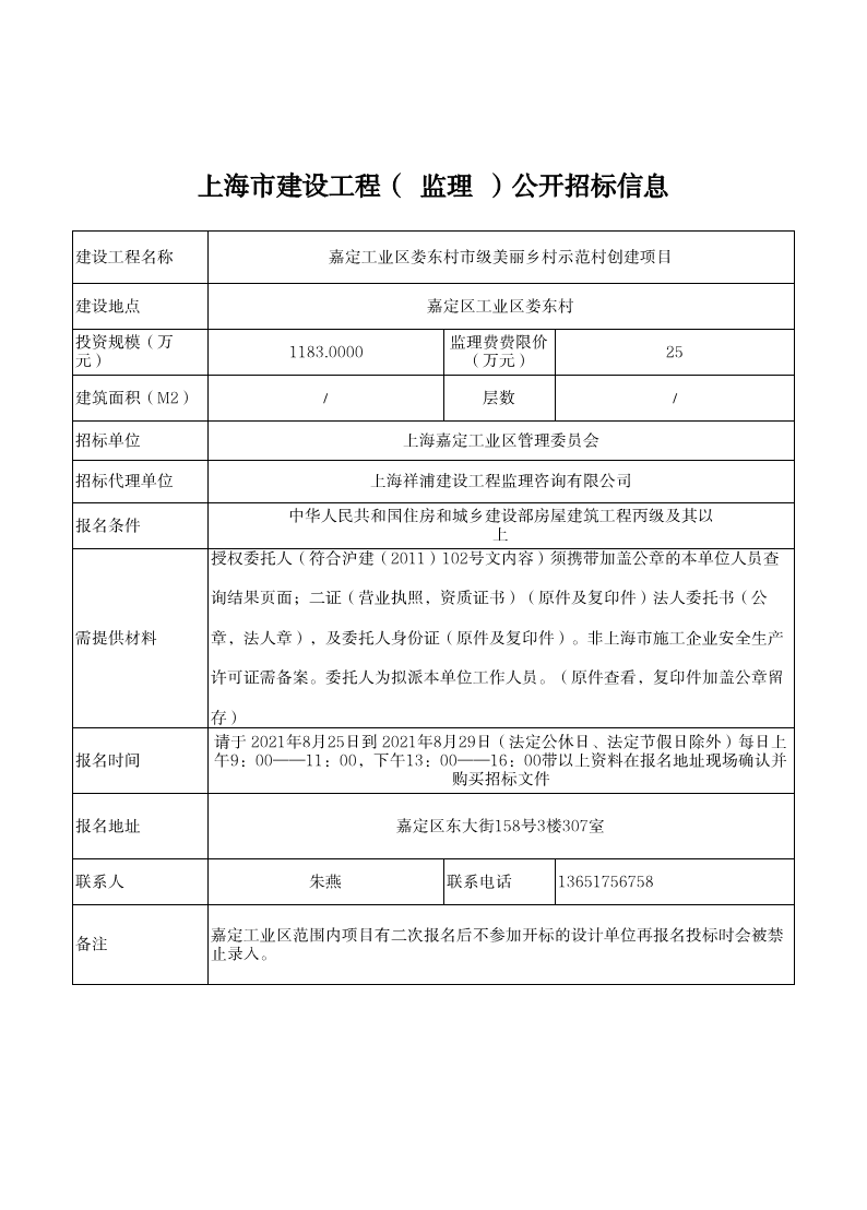 索引号: 00001434-9/2021-00087 发布机构: 嘉定工业区 发文日期: 2021年08月24日 主题分类: 专项启事 关键词: 嘉定工业区娄东村市级美丽乡村示范村创建项目(监理)招标信息 来源:嘉定工业区 发布时间:2021-08-24 浏览次数: 次 【字体:小 大】 分享到: